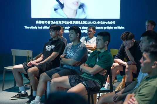 南三陸311メモリアルのラーニングプログラムでは「あなたならどう考えるか」を問いかけ、その問いについて参加者同士で対話しながら考えあう時間が特長となっています。今回の話し合いの中でも、普段あまり考えることのないテーマを話し合い、選手同士も明確な答えが出せない様子でした。