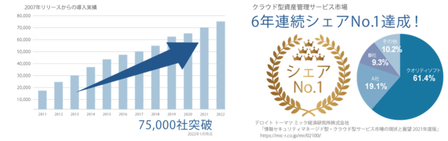 「ISM CloudOne」は、国内クラウド型資産管理サービス市場において、6年連続でシェアNo.1※を獲得することができました。今後も変化の続くIT環境に対応できるソリューションとして、全ての企業に「トランスペアレントな安全」を提供してまいります。