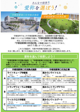 これらの施設が,皆様に広く認知され,末永く親しまれ,愛される施設となるよう,愛称を投票により決定いたします。