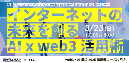 2025年3月23日に無料オンライン公開講座「インターネットの未来を創るAI×web3活用術」を実施いたします。この公開講座は、千葉工業大学で2025年度春から開始されるAI×web3人材育成を目指す教育プログラムに先駆けて実施されるものです。