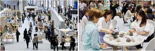 2024年の「インテリア ライフスタイル」会場の様子(左)と、ワークショップに参加した来場者(右)