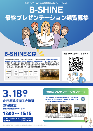 「B-SHINE」の最終プレゼンテーションを3月18日(月)に開催します。