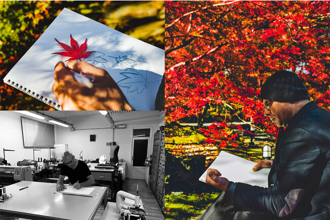 イタリアで大統領より「マエストロ|巨匠」の称号を授かるガブリエール氏。そのイタリア職人の彼が京都を訪れ、歴史を紡ぐ寺院にて、真っ赤に彩る紅葉に感激する。イタリア国旗の情熱を表す赤色を大自然に見出したという。