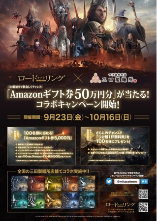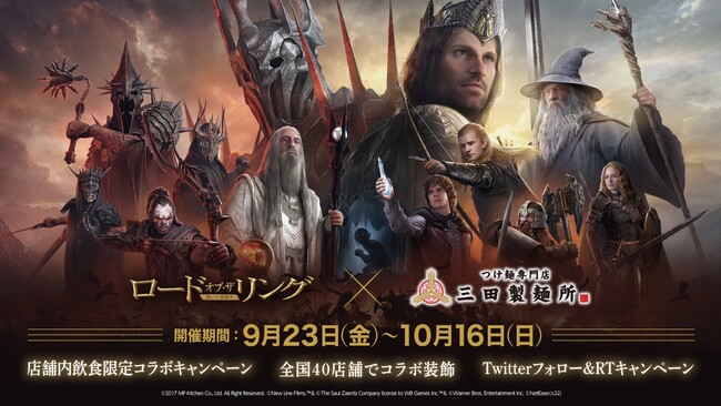 2022年9月23日(金)より、株式会社エムピーキッチン(本社:東京都渋谷区、代表取締役:村上竹彦)が運営する「つけ麺専門店 三田製麺所」は、ゲーム「ロード・オブ・ザ・リング~戦いの幕開け~」とコラボキャンペーンを実施します。