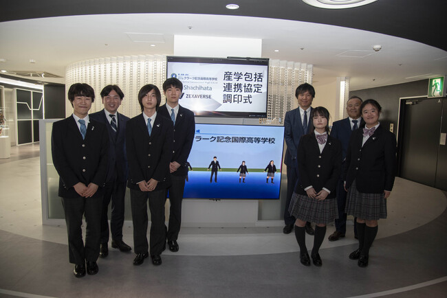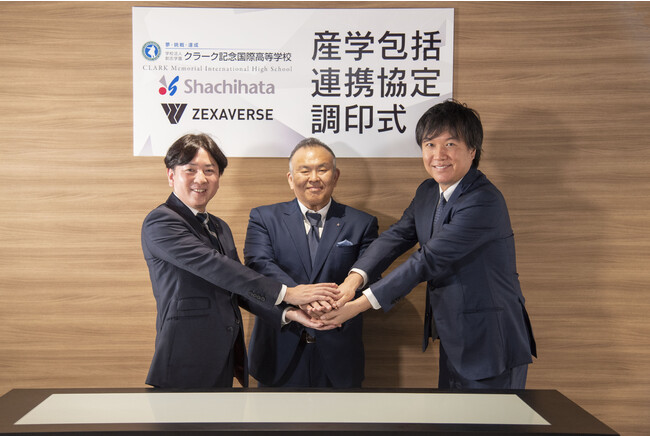 広域通信制高校のクラーク記念国際高等学校(本校:北海道深川市、校長:吉田洋一、以下本校)は、株式会社ZEXAVERSE(所在地:東京都千代田区、代表取締役社長:上瀧良平、以下ゼクサバース)、シヤチハタ株式会社(所在地:愛知県名古屋市、代表取締役社長:舟橋正剛、以下シヤチハタ)と協業で、最先端技術であるメタバース、NFT等のWEB3.0並びにドローンなどを実学的に学ぶ機会を創出すべく、包括連携協定を締結。3月2日(木)には、3社合同での調印式を実施いたしました。
