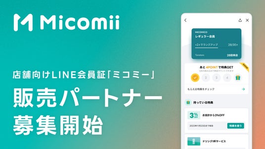 Micoworks株式会社(本社:大阪市北区、代表取締役社長:山田 修)は、店舗向け会員証のLINEミニアプリ「ミコミー」の販売パートナーの募集開始を発表いたします。サービス拡大に伴い、飲食、サロン店舗を中心に広くご利用いただくことを目的に募集いたします。