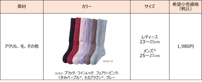 ※1…2015年~2020年岡本(株)出荷ベース。シリーズ商品「ソックス」「レッグウォーマー」「足首ウォーマー」「MENSソックス」全て含む。