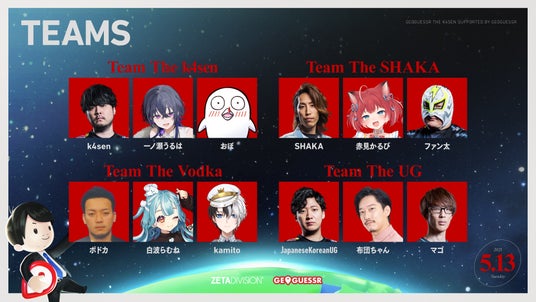 GANYMEDE株式会社(本社:東京都港区、代表取締役:西原 大輔)が運営するプロeスポーツチーム「ZETA DIVISION」に所属するストリーマー・k4sen(かせん)は、2025年5月13日(火)20時より、オンラインイベント『GeoGuessr The k4sen Supported by GeoGuessr』を開催いたします。