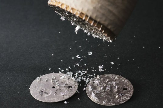 「切り廻し」と呼ばれる、薄片(フレーク)にしたプラチナ箔を文字板に散りばめています。箔を振りかけ重ねることで生まれる、繊細で美しい表情が特徴です。