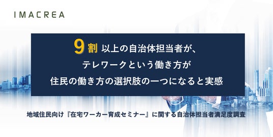 株式会社イマクリエ(本社:東京都港区 代表取締役:鈴木信吾、以下、当社)は、令和5年度中(2023年4月~2024年3月)に、当社への委託業務として地域住民向けの『在宅ワーカー育成セミナー』を実施した地方自治体の担当者を対象に、セミナーの満足度調査を実施しました。また、セミナーを受講した地域住民に対して行ったアンケートを取りまとめましたので、あわせてお知らせします。