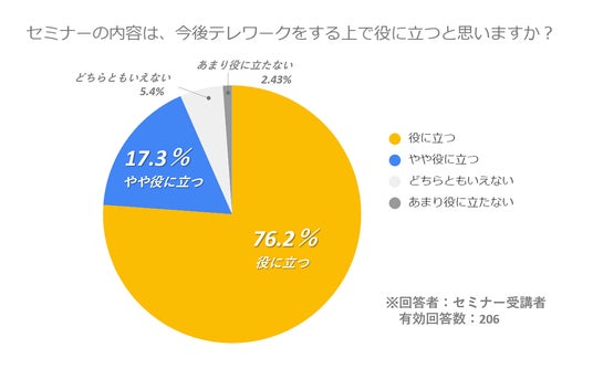 受講者に対して行ったアンケートでは、9割以上の受講者がセミナーの内容について、今後テレワークをする上で役立つと思うと回答しています。