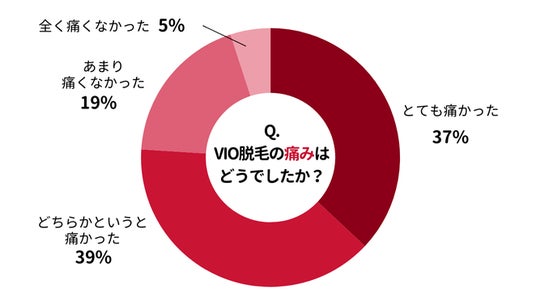 VIOは比較的太く濃い毛が生えているため、痛みを感じやすい部位と言われています。「あまり痛くなかった(19%)」と回答した人は2割程度なので、ある程度痛みがあるものと覚悟したほうが良いでしょう。