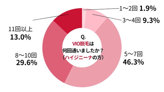 - VIO脱毛に通った回数は「5~7回(46.3%)」が最多