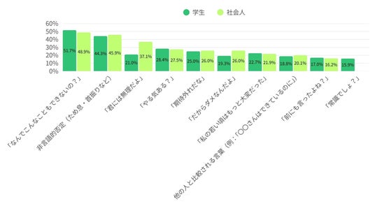 学生・社会人ともに、最も“萎える”言動は「なんでこんなこともできないの?」という直接的な能力否定。