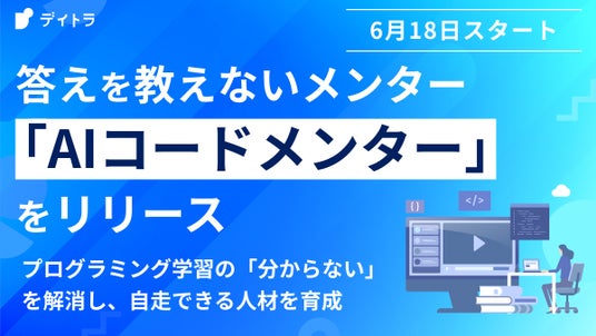 Webスキルが身につくオンラインスクール「デイトラ」を運営する株式会社デイトラは、2025年6月18日、プログラミング学習専用の「AIコードメンター」をリリースしました。本サービスは、デイトラ受講生に無料で提供されます。