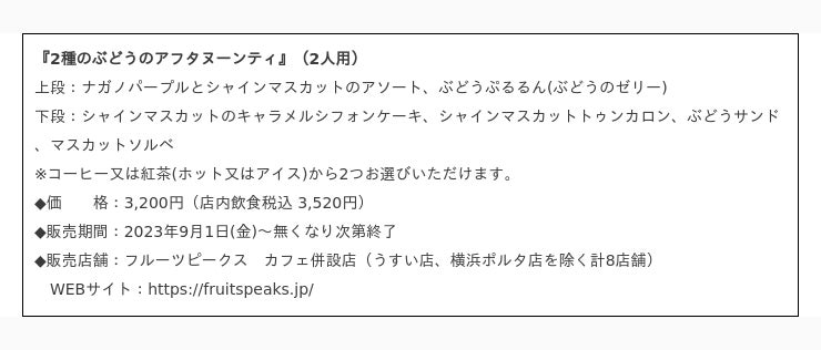 人気のアフタヌーンティから 2種のぶどうを使った新商品が登場