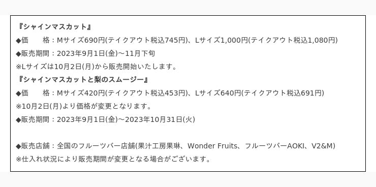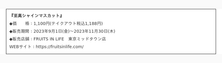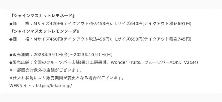 ~9/1よりフルーツピークス、果汁工房果琳、FRUITS IN LIFE 各ブランドで旬のシャインマスカット商品を販売~