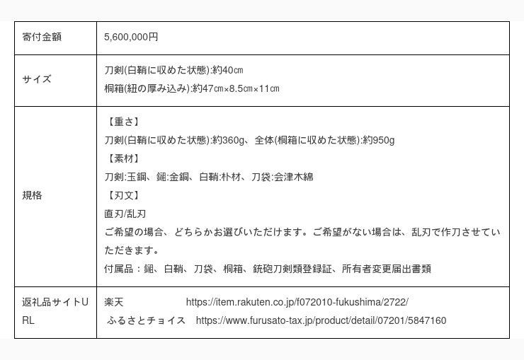 福島市の「ふるさと納税」返礼品に、福島市立子山に日本刀の鍛錬場「将平鍛刀場」を構える作刀の第一人者、刀匠・藤安将平(ふじやす まさひら)さんの「日本刀(御守刀)」2種が登場します。19歳で刀鍛冶を志して以来56年間、品質や美しさにおいて日本刀の頂点と言われている鎌倉時代の日本刀「古刀」の再現に邁進している刀匠が自ら作り上げる御守刀です。