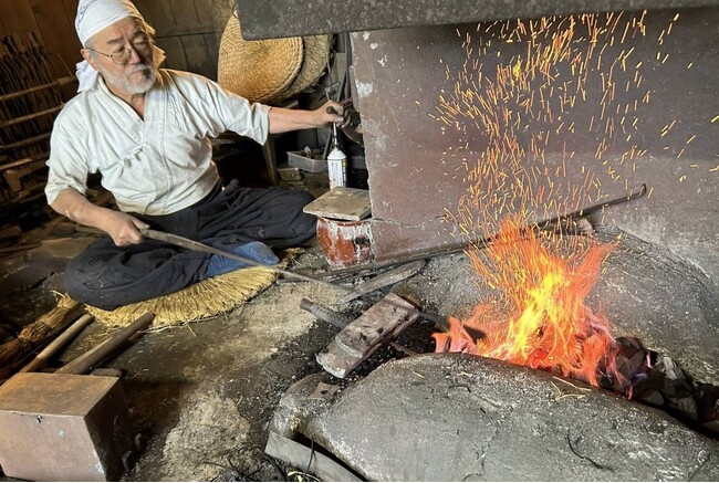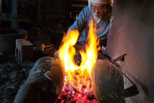 奈良時代の遺跡から発掘した炉を再現し、砂鉄から鋼を作るなど、50年の長い道のりをかけて鍛錬し、本物だけに宿る「美」と「精神」を追求。昨年頃から、ようやくそれらしいものができるようになってきました。