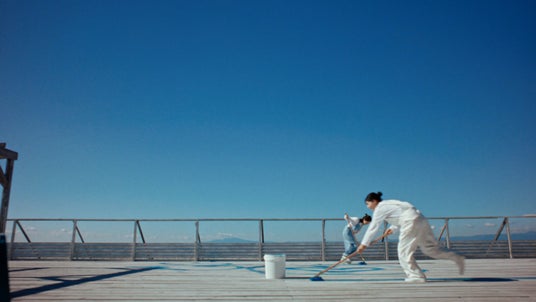 石井さんが海沿いのテラスデッキを「氷結(R)︎」ブルーでペイント! レミオロメン「南風」に乗せて、「氷結(R)︎」のみずみずしさを表現する新CMが完成!