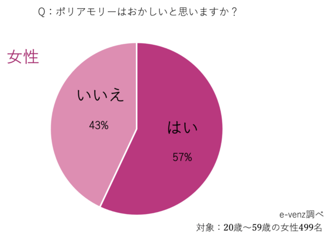男性が約4割、女性の約6割が「ポリアモリーはおかしい」と回答しています。