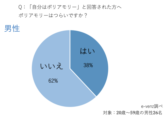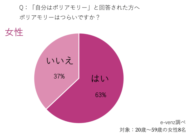 男性が38%、女性が63%の方が「ポリアモリーはつらい」と回答しています。