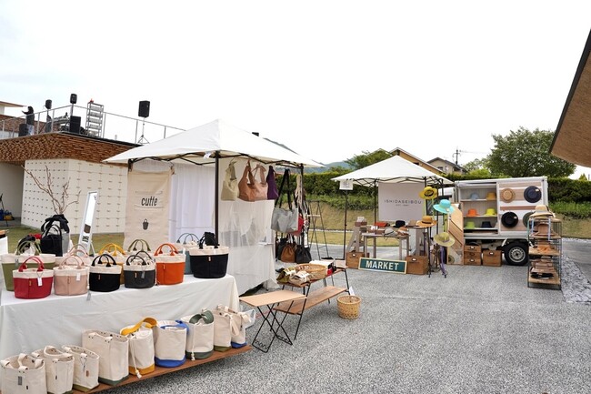 岡山県内の注目店やブランドが次々登場。焼き菓子、パン、コーヒーなどを扱う飲食店はもちろん、服や帽子、多肉植物といった雑貨の店などが勢揃い。蒜山の美しい自然に囲まれて、思いがけないアイテムや店との出会いを楽しめる場となります。