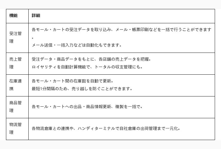 などを、他のモールの受注とまとめて行うことができます。