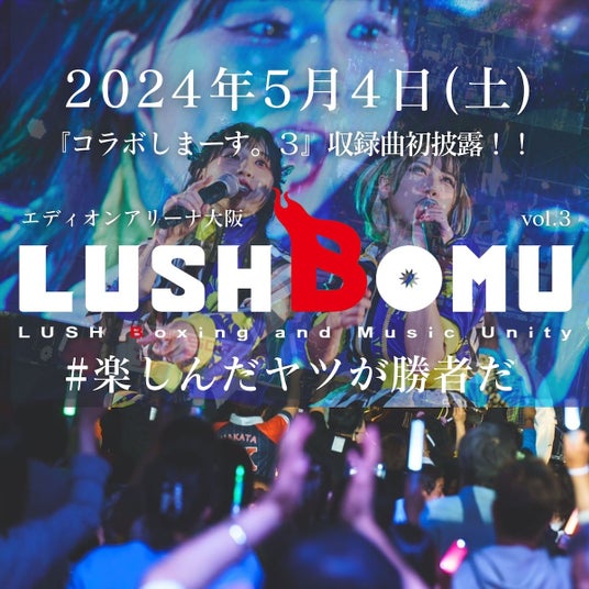 5月4日(土)開催の「LUSHBOMU vol.3(会場:エディオンアリーナ大阪)」では、本作『コラボしまーす。3』の収録曲をファンの皆さまの前で初披露予定。