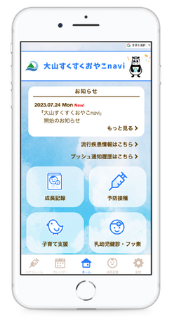 ライフスタイルの多様化による子育て世代のニーズの変化に伴い、一人一人の状況に合わせた子育て情報の発信や簡便な予防接種スケジュールツールを提供するため、鳥取県内でも取り入れられている 子育て支援アプリ「子育てモバイル」を導入する運びとなりました。大山町オリジナルのデザインを施し、子育て支援アプリ「大山すくすくおやこnavi」として提供いたします。