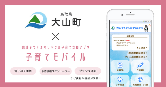自治体向けサービスを開発する株式会社ミラボ(本社:東京都千代田区、代表取締役:谷川一也、以下「ミラボ」)の子育て支援アプリ「子育てモバイル」が、鳥取県 大山町に導入され、「大山すくすくおやこnavi」として7月24日より提供を開始します。