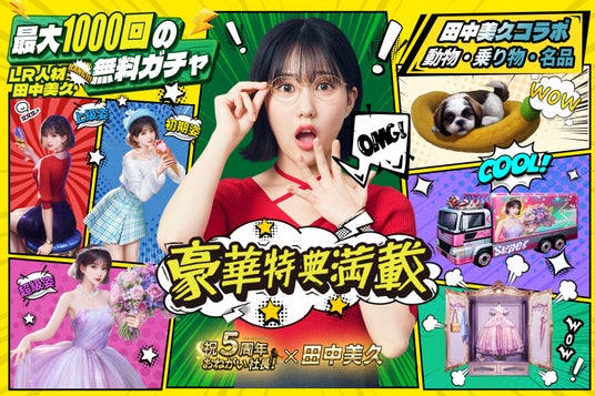併せて、ゲーム内には5周年限定のLR人材「田中美久」をはじめ、コラボ乗り物・名品・動物といった特別コンテンツが期間限定で登場。さらに、『おねがい社長!』公式X(旧Twitter)では豪華賞品が当たる複数のキャンペーンも順次展開してまいります。