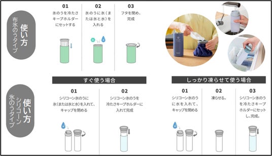 冷たく、その冷たさが長持ちする「アイスパック」さまざまなクーリングアイテムがありますが、そもそもあまり冷たくないものや、その冷たさが持続しないものが多い中、「アイスパック」シリーズは、氷や氷水を使用する氷のう自体がちょうどよい冷たさで、魔法瓶構造の専用保冷ホルダーにセットすればその冷たさがキープできるので、使い方によってはお帰り時まで冷たくクーリングができます。氷のうの素材にシリコーンや布を使い、お年寄りからお子様まで肌触りよくご使用いただけます。お手入れ性や携帯性にも優れており、魔法瓶メーカーの保冷性能への信頼性も合わせて、ご好評をいただけていると思われます。