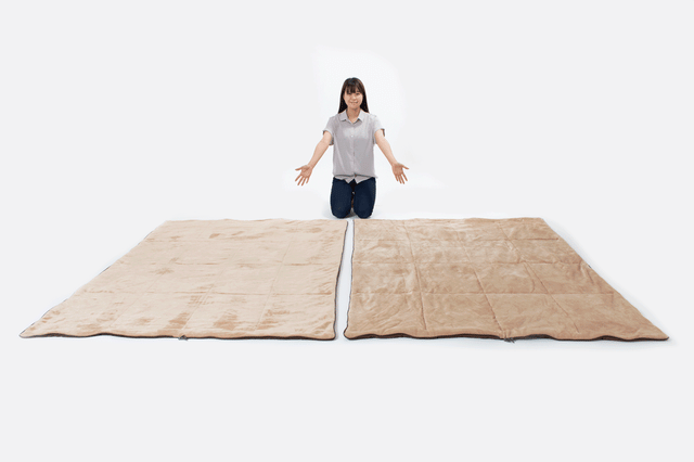 「HOTαリバーシブルあったか寝袋クッション」は、2個をつなげてビッグサイズの寝袋として使用することができます!