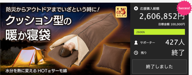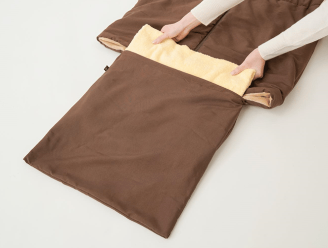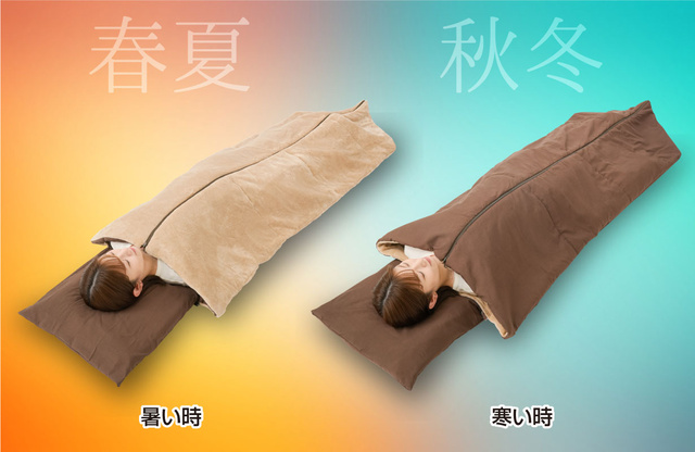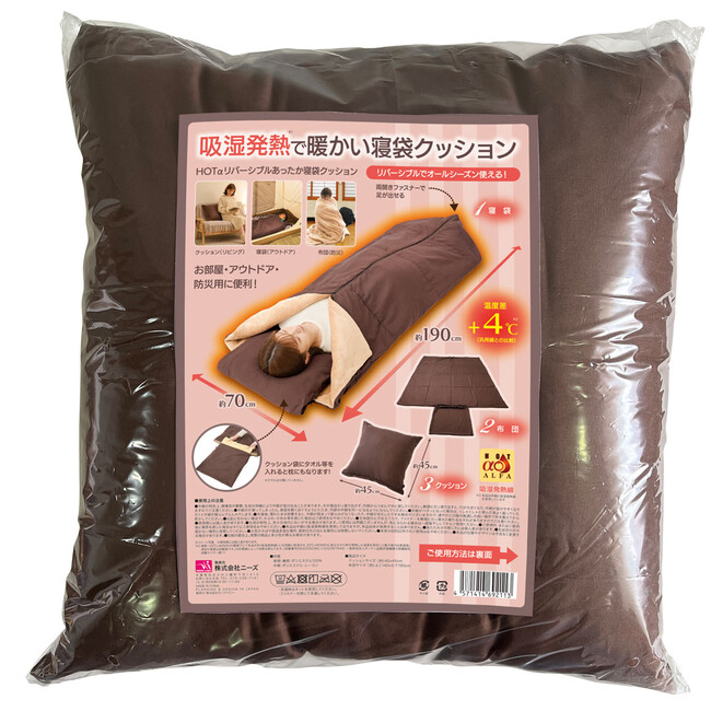 クッション型の暖か寝袋 水分を熱に変えるHOTαサーモ綿