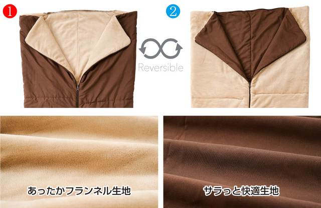 あったか高性能の多機能寝袋!あったかフランネル生地とサラっと快適生地のリバーシブル仕様でオールシーズン対応!