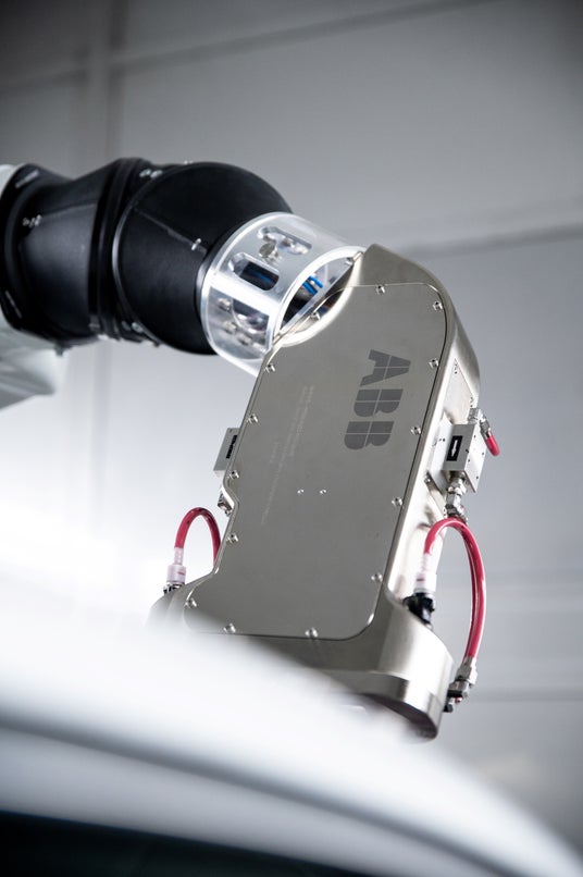 内装塗装やシーリングといった複雑で時間のかかる作業はすべてABBのシステムによって行われ、必要な場所にのみ正確に塗装できるため、手作業でマスキングを行う必要がなくなり、時間と資材が節約できます。同様に、ABBのRB1000iデジタル塗装機は塗装効率を10%改善し、塗装ロスを30%以上削減し、空気中に放出される塗料の量を減らします。