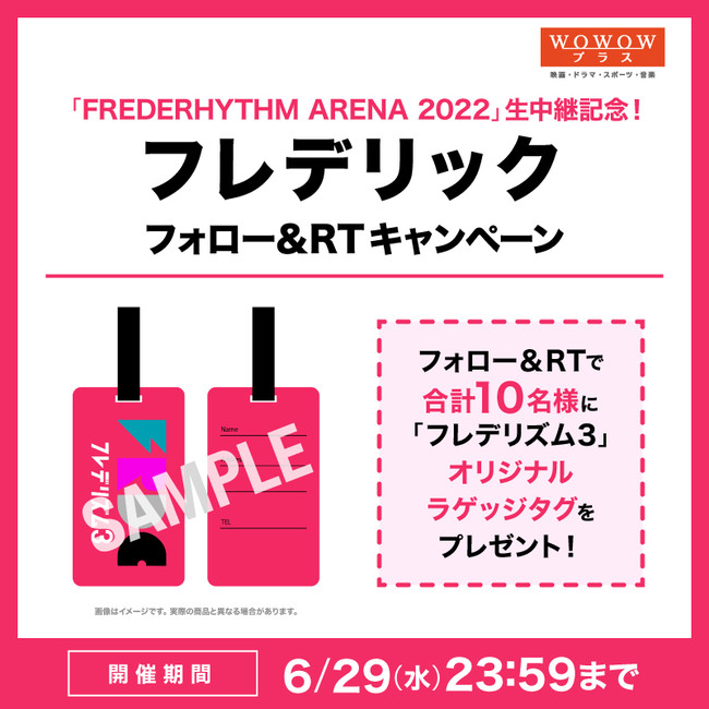 3rdフルアルバム「フレデリズム3」を引っ提げて開催する、フレデリック自身最大規模となる代々木第一体育館ワンマンライブをWOWOWプラスにて6月29日(水)19:00~テレビ初独占生中継いたします。これを記念して、WOWOWプラス公式Twitterにて、フレデリック「フレデリズム3」オリジナルラゲッジタグを抽選で10名様にプレゼントするフォロー&RTキャンペーンを開催中!