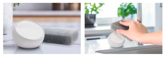限られた時間を効率的に、心地よく過ごしたい。サンサンウォッシュは、そんな現代の暮らしに応えるために生まれました。軽くタッチするだけで高い洗浄力を発揮する固形洗剤は、肌の弾力や潤いを守るコラーゲンや保温効果の高い温泉成分をたっぷり配合されているため手肌へも優しく、毎日の食器洗いを手軽で快適なものにします。シンクにそっと佇み、馴染むデザインは、キッチンの景観を損ねません。