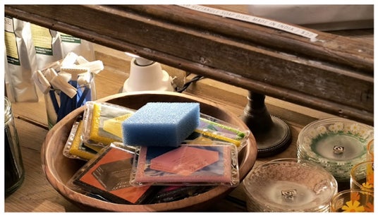 ダイニチ・コーポレーションは創業から、食器洗い用固形洗剤の製造販売を行っています。製造から販売を行う中で、固形洗剤と相性の良いスポンジを研究し、高品質ポリウレタンを使用した、従来のスポンジの概念を覆す「サンサンスポンジ」が生まれました。半年以上使えるほど丈夫で長持ちなので、ごみの削減に。