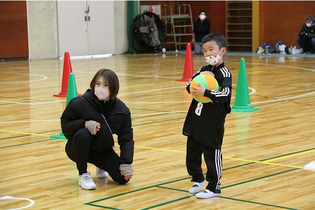 参加者の皆さんには、バスケットボールを含む3つの種目(サッカー・バレーボール)をローテーションにて体験いただきました。