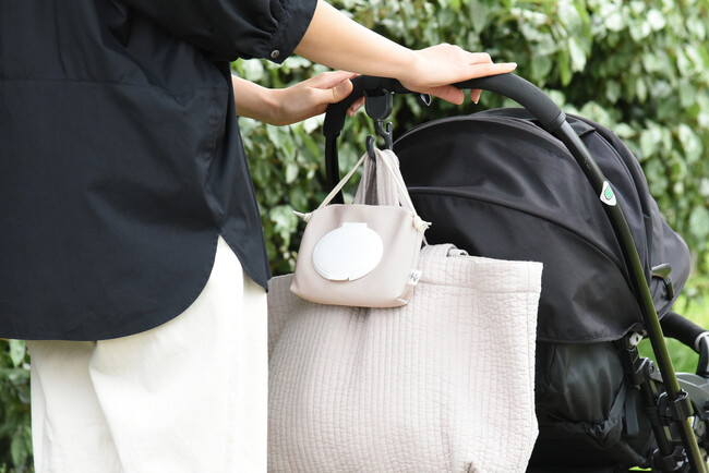 ベビーカーのフックに掛けられるだけでなく、赤ちゃんを抱っこしながら腕に掛けて移動することもできます。
