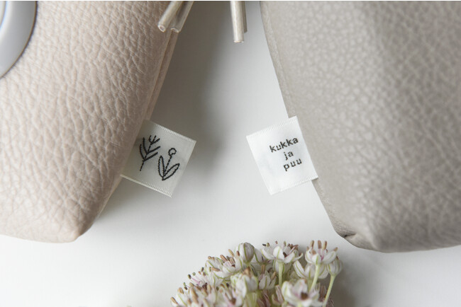 サイドにつけた「kukka ja puu」のブランドタグも、モノトーンの刺繍でシンプルに仕上げています。