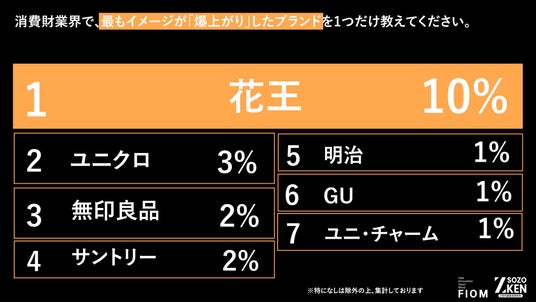 1位『花王』(イメージが良くなった:16% / 最も爆上がりした:10%)