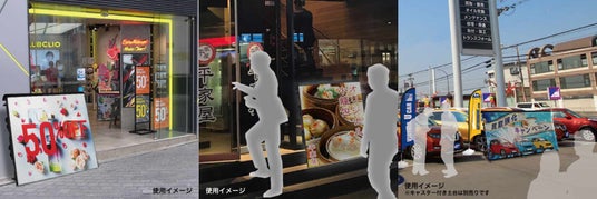 960mm角の大画面ディスプレイを採用し、高輝度で日中でも鮮明な映像表示が可能。IP65の防滴性能を備えており、天候に左右されることなく安定した集客効果を発揮します。