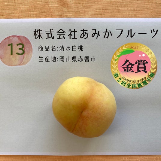第2回全国桃選手権・金賞 清水白桃 出品者:株式会社あみかフルーツ(岡山県赤磐市)