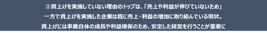 2.賃上げを実施していない理由のトップは、「売上や利益が伸びていないため」が4割