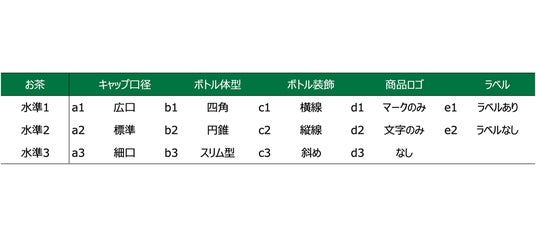 - 直交表を用いたデザイン生成により、主要なデザイン要素を機械的に組み合わせることで、ラベルありボトルとラベルなしボトルの条件を揃えて検証を行った結果、仮説は支持された。