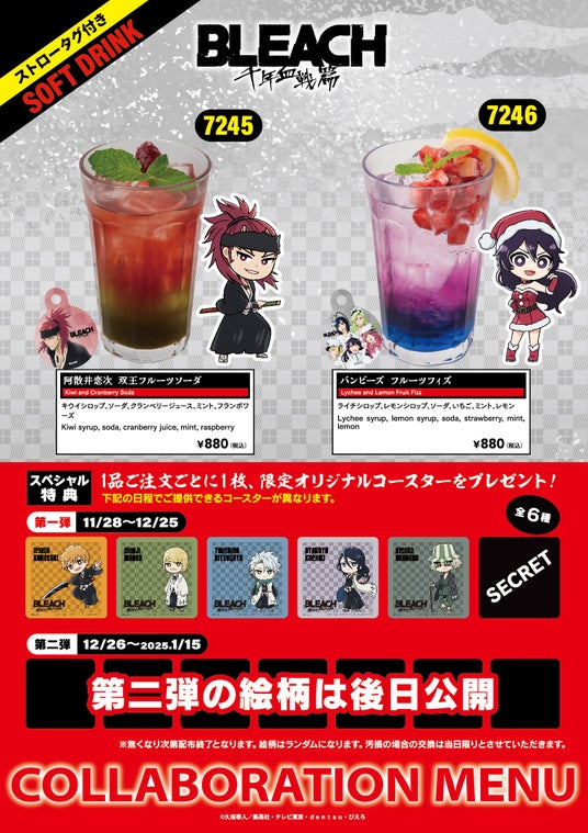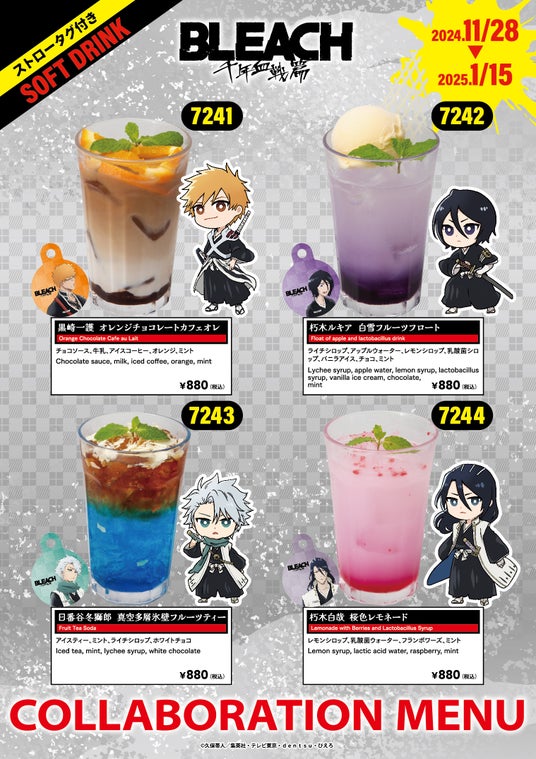 TVアニメ「BLEACH 千年血戦篇-相剋譚-」の放送を記念したコラボメニューの提供を、2024年11月28日(木)~2024年1月15日(水)で行います。