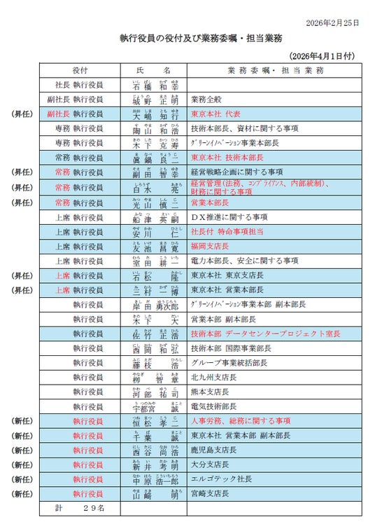 1.執行役員の役付及び業務委嘱・担当業務(2026年4月1日付)